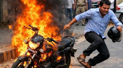 चलती बाइक में अचानक भड़की आग, जिला न्यायालय क्षेत्र में अफरा-तफरी