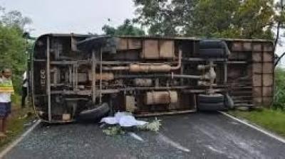 तेज रफ्तार बस पलटी, जशपुर में 5 यात्रियों की मौके पर मौत
