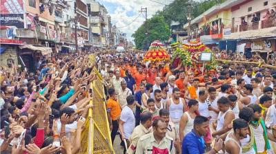 सीएम हेलीकॉप्टर से बरसाते रहे पुष्प, भक्त झूम उठे