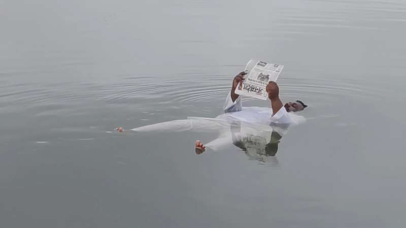 पन्ना के युवक का कमाल: तालाब को बना दिया पलंग, न अखबार भीगा न मोबाइल डूबा