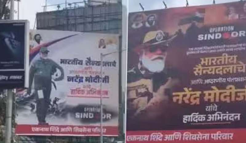 मुंबई , 8 मई । मुंबई में ऑपरेशन सिंदूर के बाद कई जगहों पर शिवसेना ने भारतीय सेना और प्रधानमंत्री नरेंद्र मोदी की प्रशंसा करते हुए पोस्टर लगाए हैं। खास तौर पर यह पोस्टर दादर में लगाया गया है। इस पोस्टर में प्रधानमंत्री मोदी को एक योद्धा के रूप में दिखाया गया है।