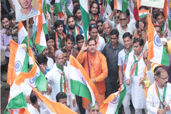 तिरंगा यात्रा दोपहर 3 बजे गांधी चौक से प्रारंभ होकर नगर के मुख्य मार्गों से होती हुई बस स्टैंड पहुची। मार्ग में जगह जगह पुष्प वर्षा कर यात्रा का स्वागत किया गया। वही यात्रा में भारतीय सेवा के पूर्व सैनिक भी शामिल हुए जिन्हें देख हर तरफ 'भारत माता की जय', 'वंदे मातरम्', और 'जय हिंद' के नारों से वातावरण गुंजायमान हो उठा।