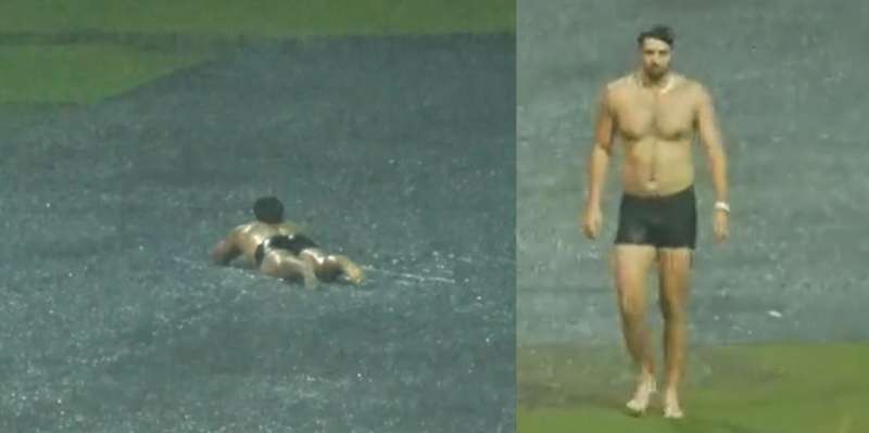 Tim David: रॉयल चैलेंजर्स बेंगलुरु टीम एम चिन्नास्वामी में अभ्यास कर रही थी तभी तेज बारिश आ गई. सभी RCB प्लेयर्स अपनी किट लेकर बाहर चले गए, लेकिन ऑस्ट्रेलियाई प्लेयर टिम डेविड ऐसी बारिश देखकर खुद को रोक नहीं पाए. वह मैदान के बीचों बीच आ गए और बच्चों की तरह नहाने लग गए, उन्होंने अपनी ड्रेस उतार दी और ग्राउंड में जमा पानी के बीच लोटपोट होने लगे. उनका ये वीडियो काफी वायरल हो रहा है.