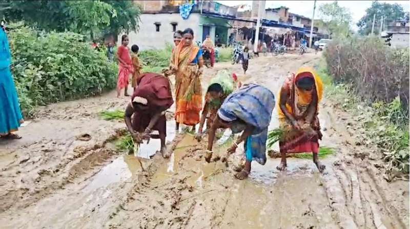 उमरिया में टूटी उम्मीदें, महिलाओं ने सड़क पर बोया धान, कहा- ‘यही है विकास’