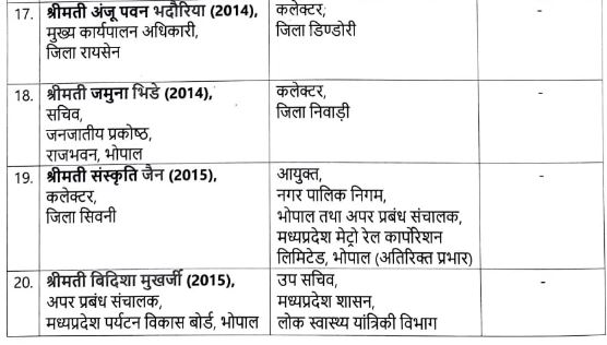 भोपाल। मध्य प्रदेश की मोहन सरकार ने मंगलवार को बड़ी संख्या में आईएएस अधिकारियों को इधर से उधर किया। भारतीय प्रशासनिक सेवा के 24 अधिकारियों को नई जिम्मेदारी सौंपी गई है। इसमें 12 जिलों के कलेक्टर को हटा दिया गया है। इसमें भिंड में विधायक से भिड़ने वाले कलेक्टर संजीव श्रीवास्तव को लोक निर्माण विभाग में अपर सचिव बनाया गया है। वहीं, आईएएस बनने के 14 साल बाद पहली बार कलेक्टर बनीं नेहा मारव्या सिंह को भी हटा कर विमुक्त घुमन्तु एवं अर्धघुमन्तु जनजाति विभाग का संचालक बनाया गया है।