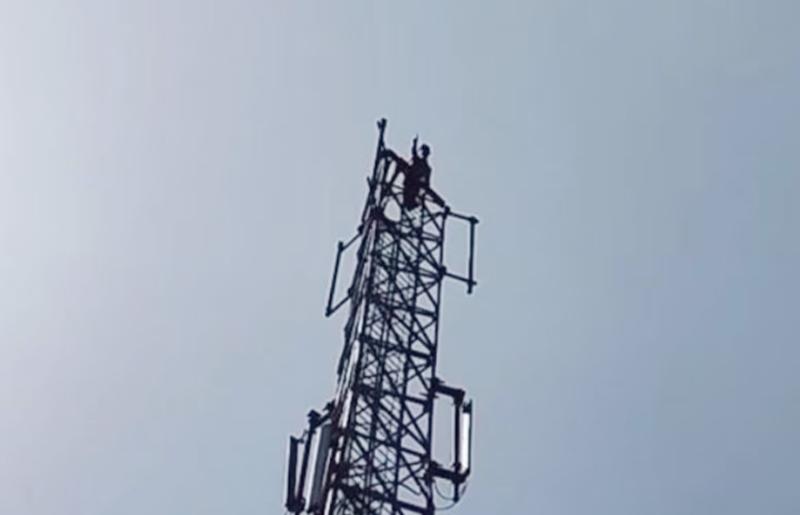प्रेमी की गिरफ्तारी से टूटी युवती, मोबाइल टावर पर चढ़कर की रिहाई की मांग