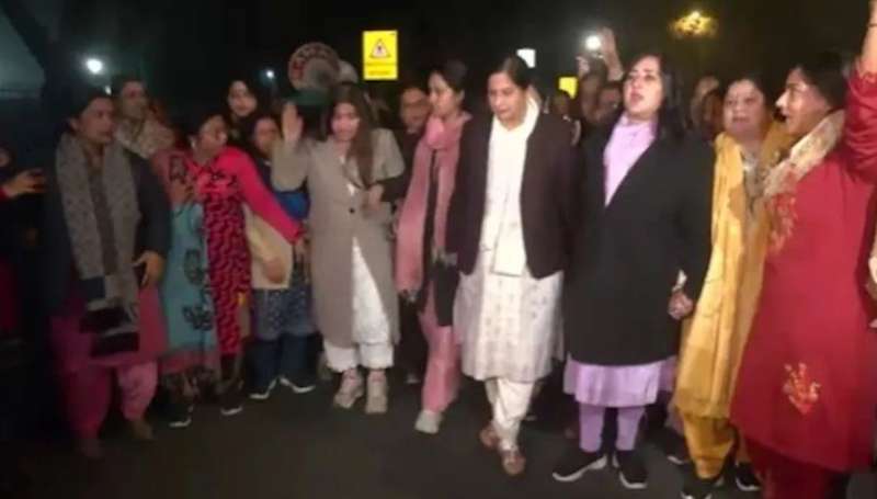 बीजेपी महिला मोर्चा ने केजरीवाल के घर के बाहर किया प्रदर्शन