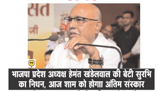 भाजपा प्रदेश अध्यक्ष हेमंत खंडेलवाल की बेटी का निधन, पार्टी में शोक
