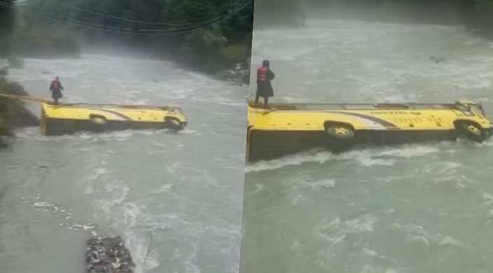 ITBP की बस सिंध नदी में गिरी, भारी बारिश में हथियार लापता