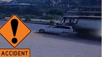 कार रिवर्स करते वक्त तेज रफ्तार ट्रक ने मारी टक्कर, 10 लोग घायल