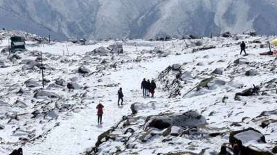 सोनमर्ग में बर्फबारी से सफेद चादर बिछी