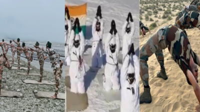 बर्फीले पहाड़ों के शिखर से रेतीले टीलों तक सैनिकों ने किया योग
