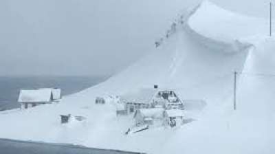 हजारों टन बर्फ में दबे कई घर