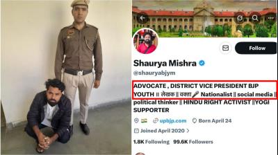 यूपी के कौशांबी से शौर्य मिश्रा गिरफ्तार, फेक पोस्ट शेयर करने पर गुरुग्राम पुलिस ने पकड़ा, भाजपा युवा मोर्चे का जिला उपाध्यक्ष होने का दावा