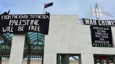ऑस्ट्रेलिया के कैनबरा में संसद भवन की छत पर फलस्तीन समर्थक प्रदर्शनकारियों ने हंगामा मचाया। गुरुवार सुबह चार फलस्तीन समर्थक प्रदर्शनकारियों का एक समूह संसद भवन की छत पर चढ़...