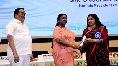 जल संचय के क्षेत्र में श्रेष्ठ पहल के लिए गुना नगरीय निकाय को राष्ट्रपति द्रौपदी मुर्मू ने किया सम्मानित