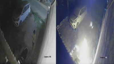 शराब के लिए पैसे नहीं मिले तो स्कूटी को लगा दी आग, CCTV में कैद वारदात