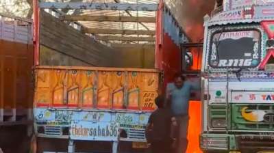 ट्रांसपोर्ट नगर, ग्वालियर में आग की घटना: पांच ट्रक जलने से दुकानों को भारी क्षति