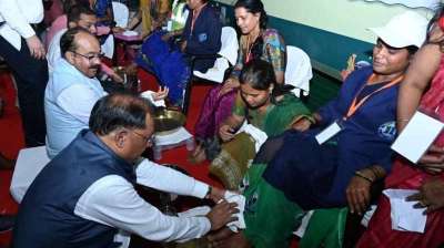 पैर पखारकर सम्मानित किए गए स्वच्छता दीदियां, मुख्यमंत्री और डिप्टी CM ने किया सम्मान