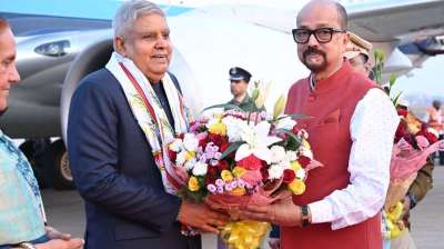 उप राष्ट्रपति जगदीश धनखड़ का माना विमानतल में आत्मीय स्वागत