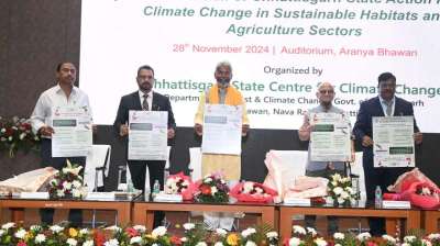 रायपुर : छत्तीसगढ़ राज्य जलवायु परिवर्तन केंद्र (CGSCCC) द्वारा नवा रायपुर अटल नगर स्थित अरण्य भवन में ”सतत आवास और कृषि क्षेत्रों में छत्तीसगढ़ राज्य जलवायु परिवर्तन कार्य योजना (APCC)...