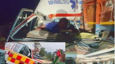 तेज रफ्तार एंबुलेंस ने ट्रक को मारी टक्कर, हादसे में डॉक्टर और ड्रेसर की मौत, छह लोग घायल
