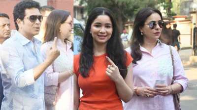 सचिन तेंदुलकर ने मुंबई में परिवार के साथ किया मतदान